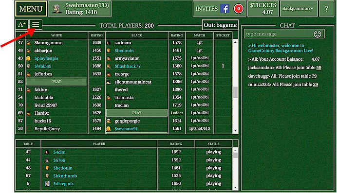 GameColony.com has introduced a second 'big-chat' layout or 'classic layout' for backgammon, gin rummy, cribbage and dominoes game rooms. This big-chat layout is a default only for tournaments rooms.