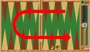 By default, your checkers move counterclockwise around the board - see red arrow below.